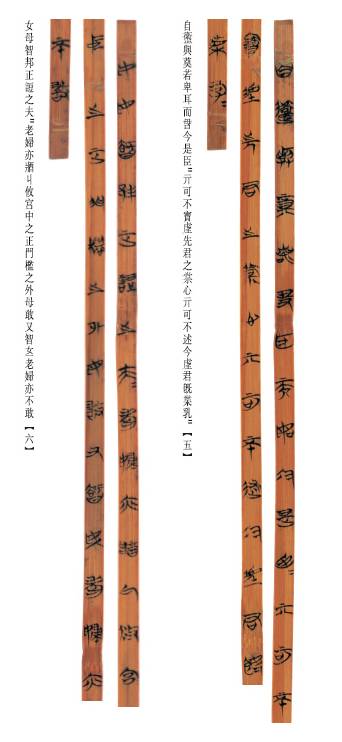 这五种简书都是前所未见的佚籍,简上均没有篇题,现题是整理时试拟的。在五种里面,三种是关于郑国史事的,即《郑武夫人规孺子》 、《郑文公问太伯》和《子产》;一种是关于齐国史事的,题为《管仲》;再一种是关于秦、楚史事的,题为《子仪》,现分述于下。