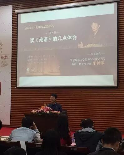 下午,牟钟鉴先生的讲座主题是“我读《论语》的几点体会”。先生认为,孔子是中华民族的精神导师,而其引领作用主要通过《论语》的诠注流布来实现。要成为一个文明的中国人,离不开学孔子,离不开读《论语》。《论语》的主要思想内涵包括仁爱忠恕之道,中庸贵和之道,教学育人之道,治国理政之道。读《论语》需要参考的重要图书包括:司马迁《史记·孔子世家》、朱熹《四书章句集注》、杨伯峻《论语译注》、钱穆《劝读论语和论语读法》等。