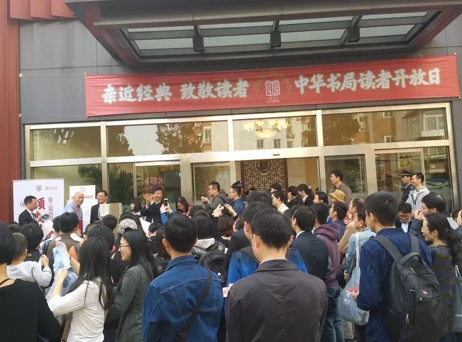 清晨的中华书局大门口,在巨幅的4·23中华书局读者开放日海报前,早早地排起了热心读者的队伍。