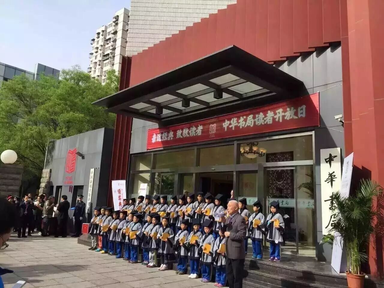 8点30分,海淀区星火小学的孩子们琅琅地吟诵《孝经》前五章。中华书局总经理徐俊面向第一批读者,发表了热情洋溢的欢迎辞。他说: